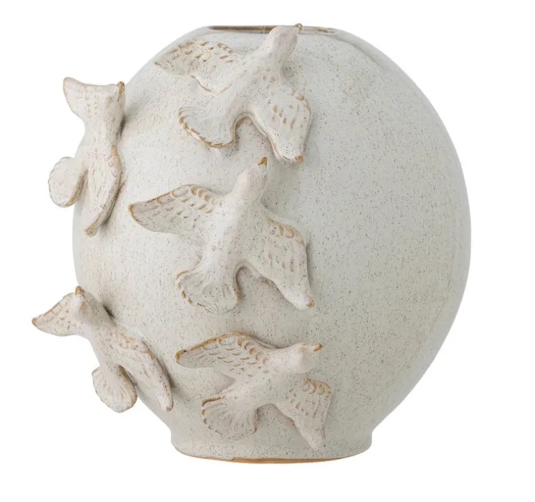 De Bloomingville Abira vaas is een prachtige handgemaakte vaas versierd met vogels die over de vaas vliegen. De vaas is gemaakt van aardewerk in een lichte kleur. Decoratief en mooi zowel met als zonder bloemen. Afmeting Ø27x25cm