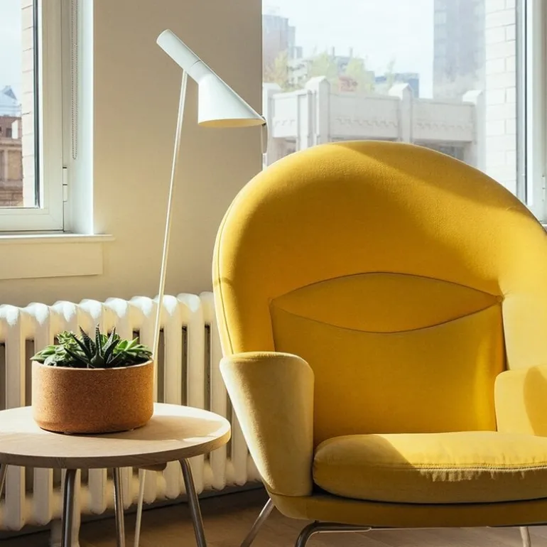 De AJ vloerlamp is in 1957 ontworpen door Arne Jacobsen en wordt nog steeds gezien als het meeste bekende ontwerp van de architect, wereldwijd! De Louis Poulsen AJ staande lamp is beschikbaar in verschillende uitvoeringen en kleuren. Hoogte 130cm