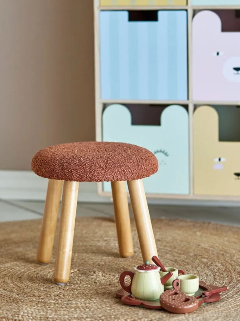 De Bloomingville Mini Aksel kruk is gemaakt van hout en polyester. Leuk voor in de kinderkamer. Afmeting Ø30x29cm