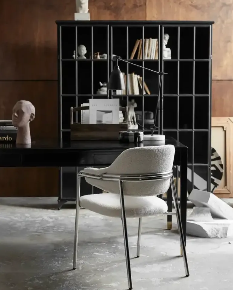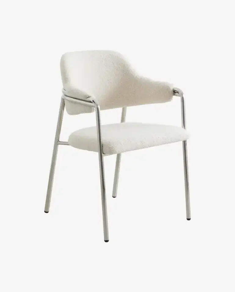 Mooie stoel uit de nieuwe AW23 collectie van Nordal. De Nordal Albert stoel is gemaakt van staal en hout. De rugleuning en zitting zijn gemaakt van een zachte teddy stof. Beschikbaar in verschillende kleuren. Afmeting 56x59x84.