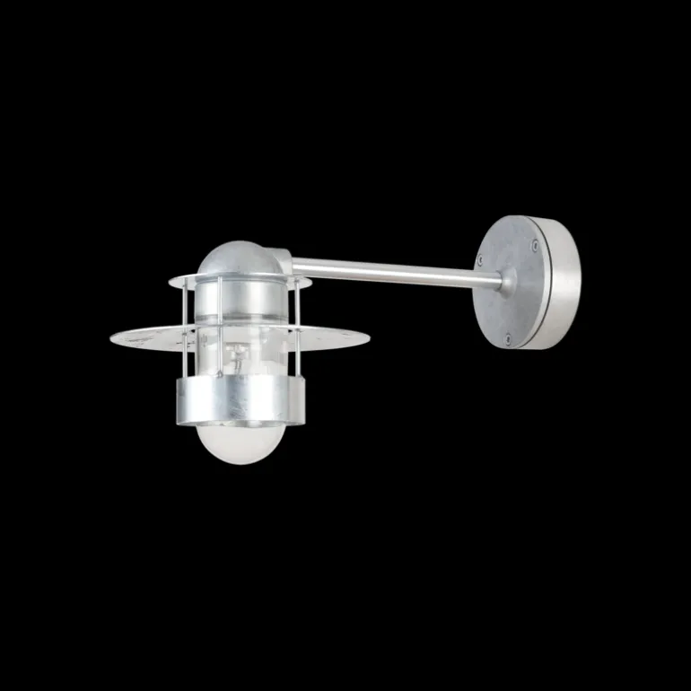 Overige: Lichtbron 100W E27. De gegalvaniseerde versies hebben een bovenkant, wanddoos en arm van natuurlijk aluminium. Zowel het natuurlijk aluminium als de gegalvaniseerde oppervlakken zullen na verloop van tijd oxideren. Daardoor kan het oppervlak ongelijkmatig worden. Dit proces is mogelijk al begonnen wanneer het product wordt opgeslagen of geleverd.