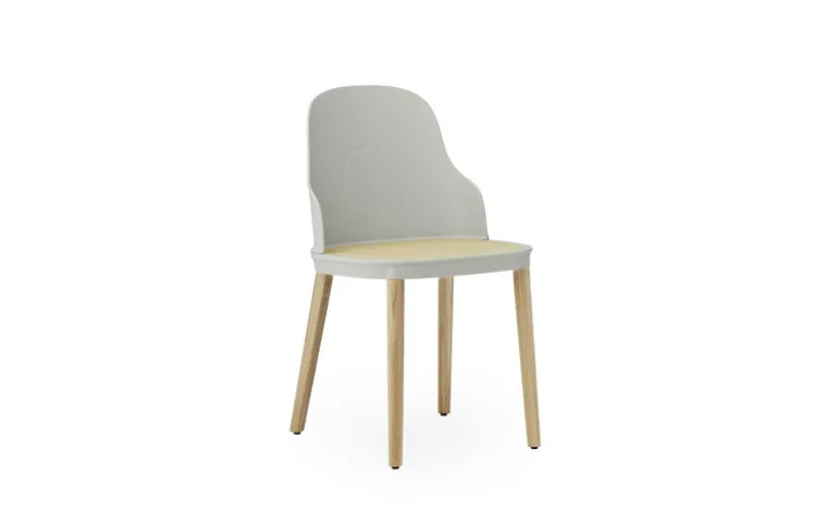 Mooie moderne stoel van het merk Normann Copenhagen. De Normann Copenhagen Allez stoel eiken/riet warm grijs is gemaakt van polypropylene, eikenhout en gevlochten riet. Beschikbaar in verschillende kleuren en varianten. Afmeting: 79x45x50cm.