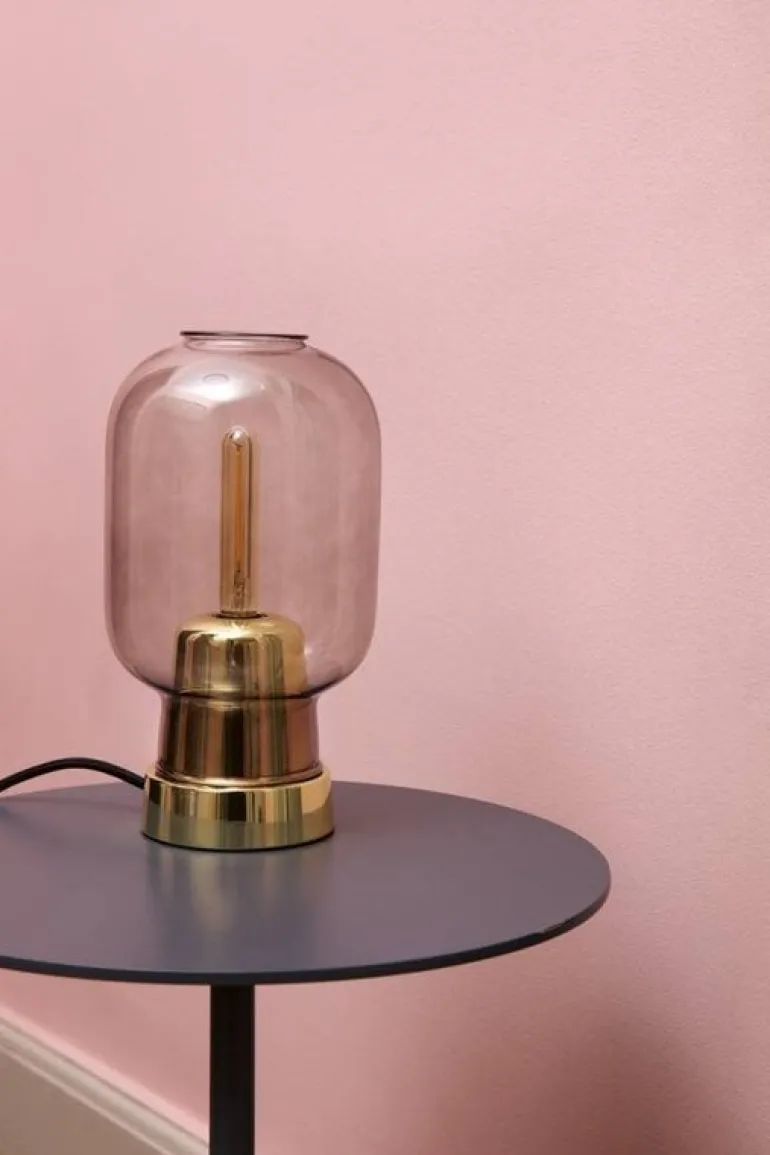 De AMP tafellamp is ontworpen door designer Simon Legald en komt uit de moderne lampen collectie van het Deense Normann Copenhagen. Deze prachtige design lamp is gemaakt van messing met een grijze glazen lampenkap.