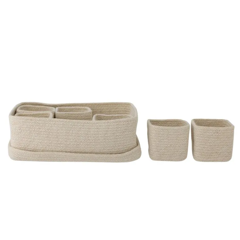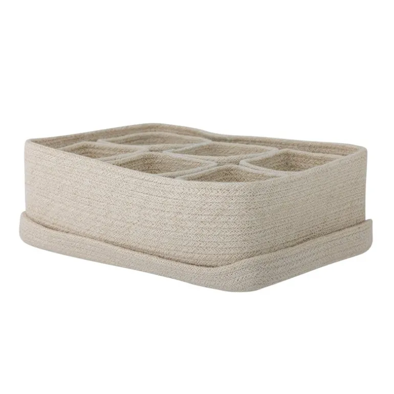 De Bloomingville Annukka mand met deksel is de perfecte oplossing voor stijlvolle en functionele opslag. De mand bevat zes kleinere manden die in de grote passen. Afmetingen 36x12x26cm