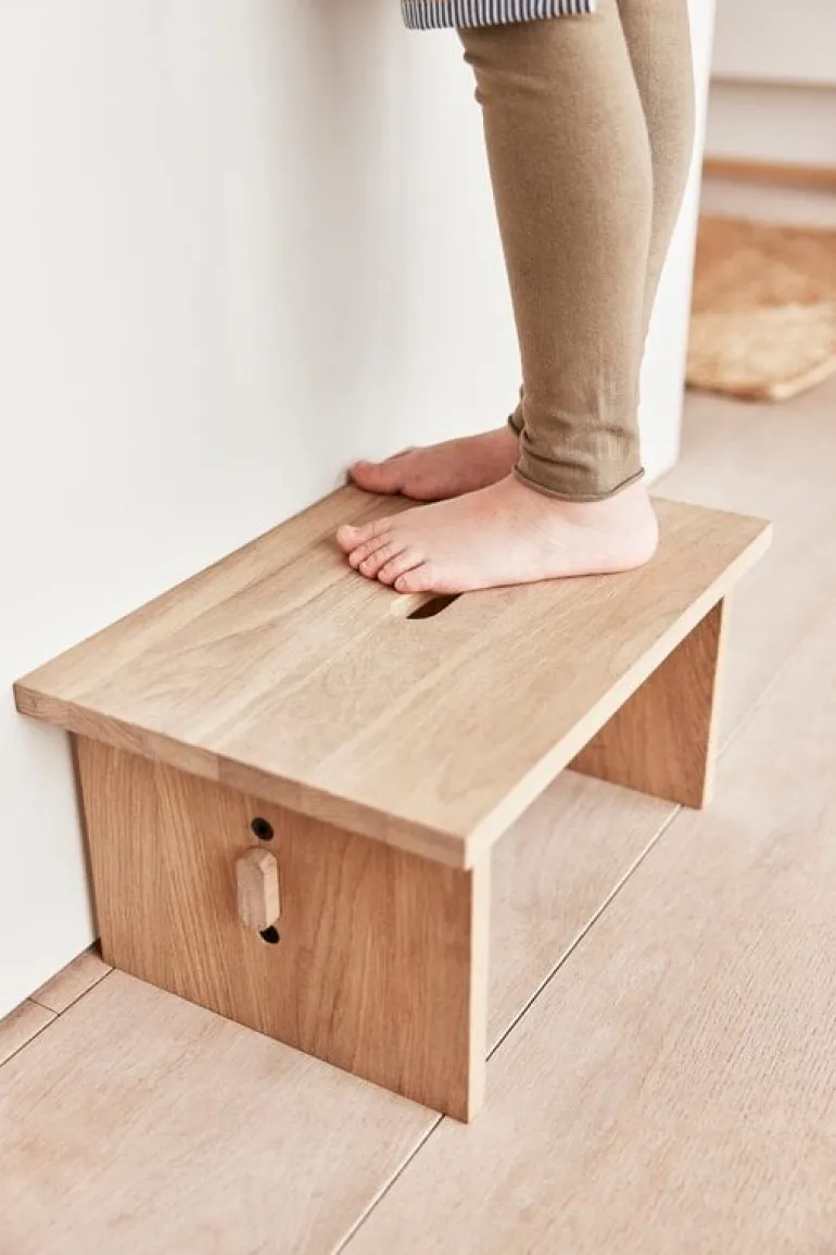 De OYOY Arca kruk is ontworpen voor kinderen. Een handig opstapje voor bijvoorbeeld de keuken of badkamer zodat kinderen overal goed bij kunnen. Gemaakt van eikenhout. Afmeting 36x24x18cm