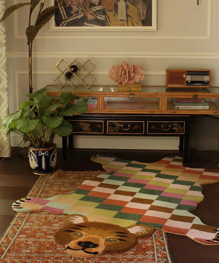 De Tapis Amis vloerkleden van Doing Goods zijn razend populair en wij begrijpen waarom! Het Doing Goods Archie check bear vloerkleed XL is prachtig en wordt met veel liefde handgemaakt in India van wol. Afmeting 240x165x2cm