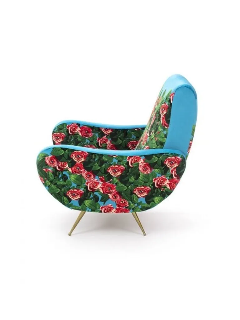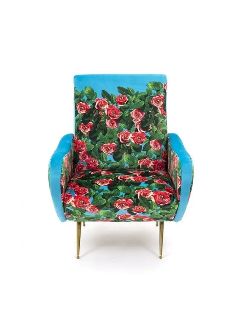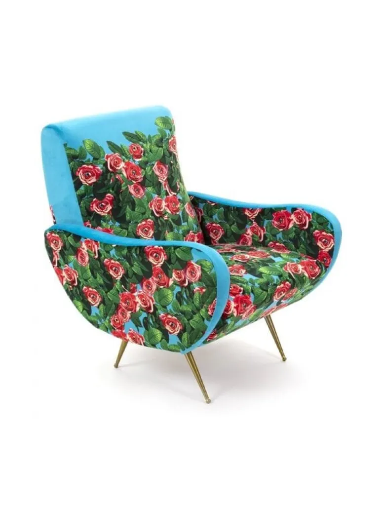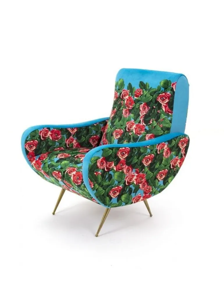 Seletti heeft zich met het ontwerp van de stoel laten inspireren door de jaren 50. De print daarin tegen is verrassend! In meerdere prints en kleuren beschikbaar. De Seletti armstoel roses is een echte EYECATCHER! Afmeting 70 x 79 h. 86 cm