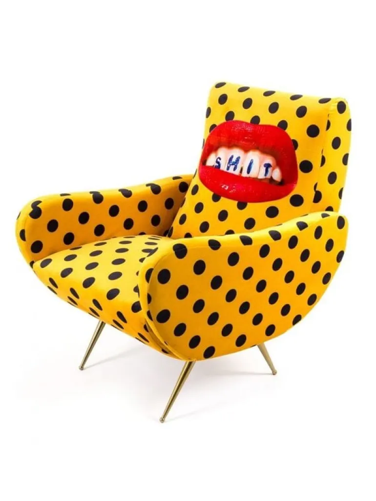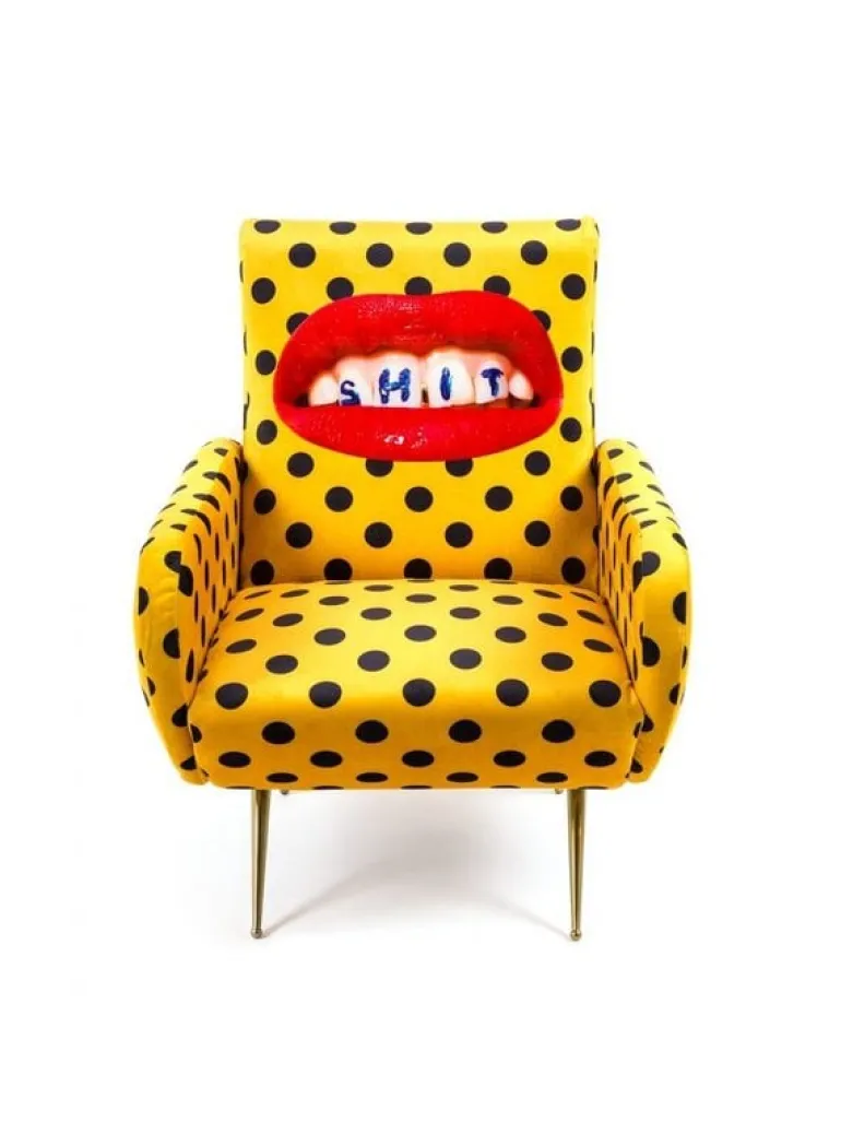 Seletti heeft zich met het ontwerp van de stoel laten inspireren door de jaren 50. De print daarin tegen is verrassend! In meerdere prints en kleuren beschikbaar. De Seletti armstoel shit is een echte EYECATCHER! Afmeting 70 x 79 h. 86 cm