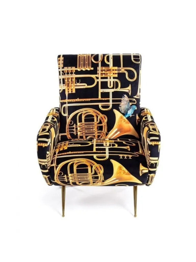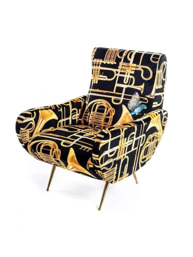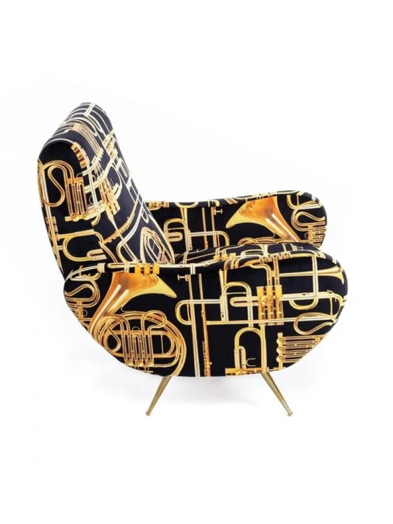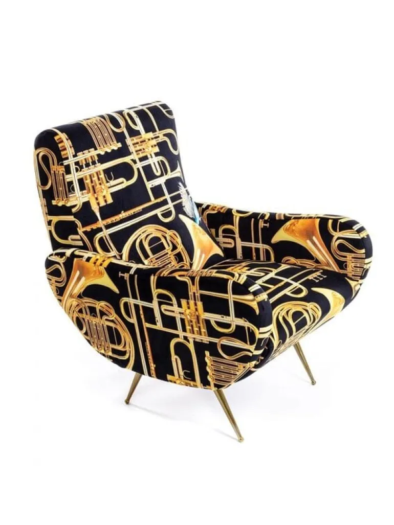 Seletti heeft zich met het ontwerp van de stoel laten inspireren door de jaren 50. De print daarin tegen is verrassend! In meerdere prints en kleuren beschikbaar. De Seletti armstoel trumpets is een echte EYECATCHER! Afmeting 70 x 79 h. 86 cm