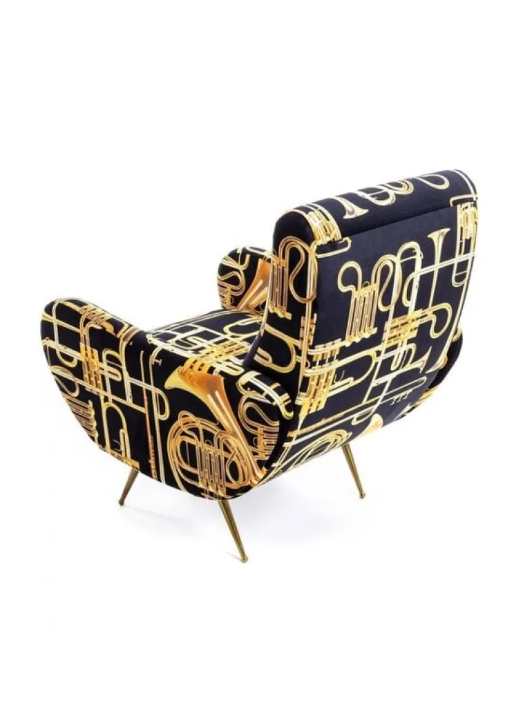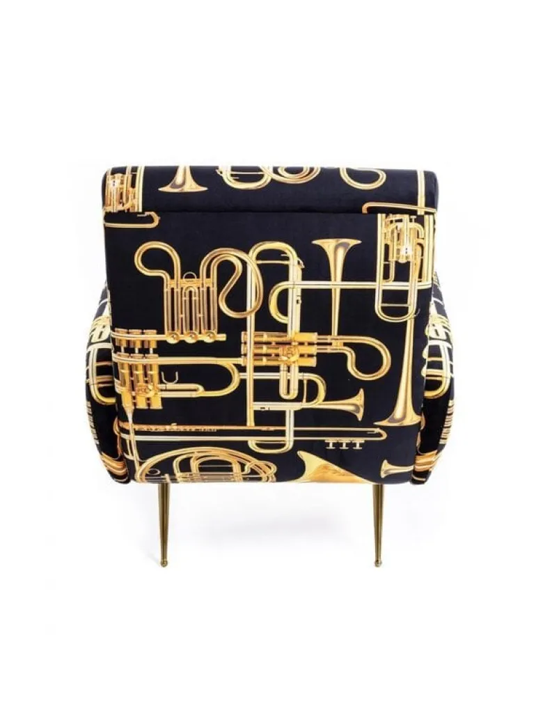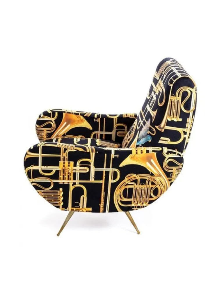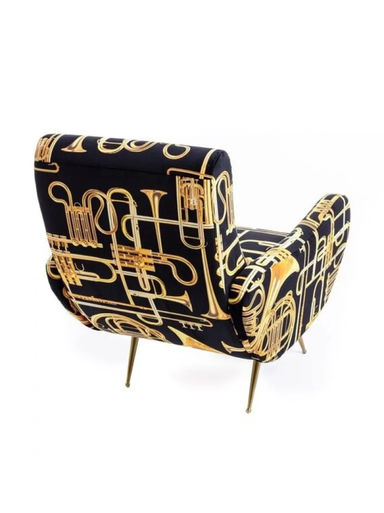 Seletti heeft zich met het ontwerp van de stoel laten inspireren door de jaren 50. De print daarin tegen is verrassend! In meerdere prints en kleuren beschikbaar. De Seletti armstoel trumpets is een echte EYECATCHER! Afmeting 70 x 79 h. 86 cm