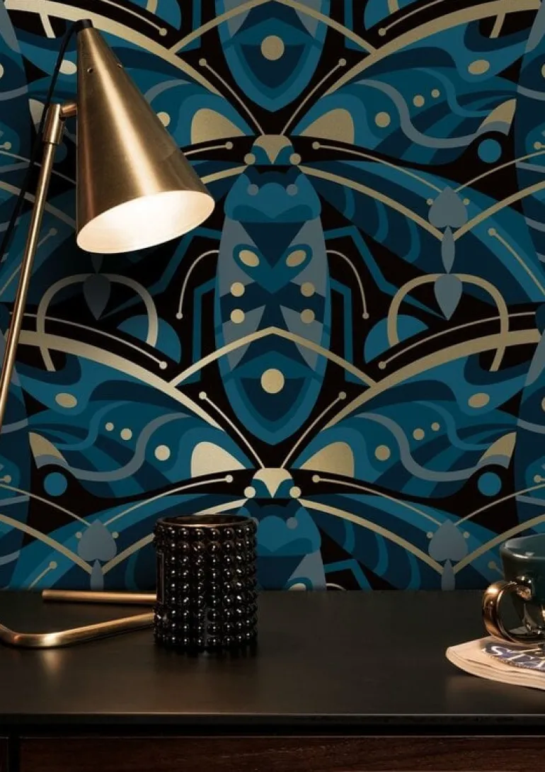 Prachtig goud behang met een mooie zijdeglans uitstraling van KEK Amsterdam. Het KEK Amsterdam Art deco animaux beetle in jaren 30 stijl is een echte eyecatcher op de muur. Beschikbaar in verschillende kleuren. Afmeting 50 cm x 10 m