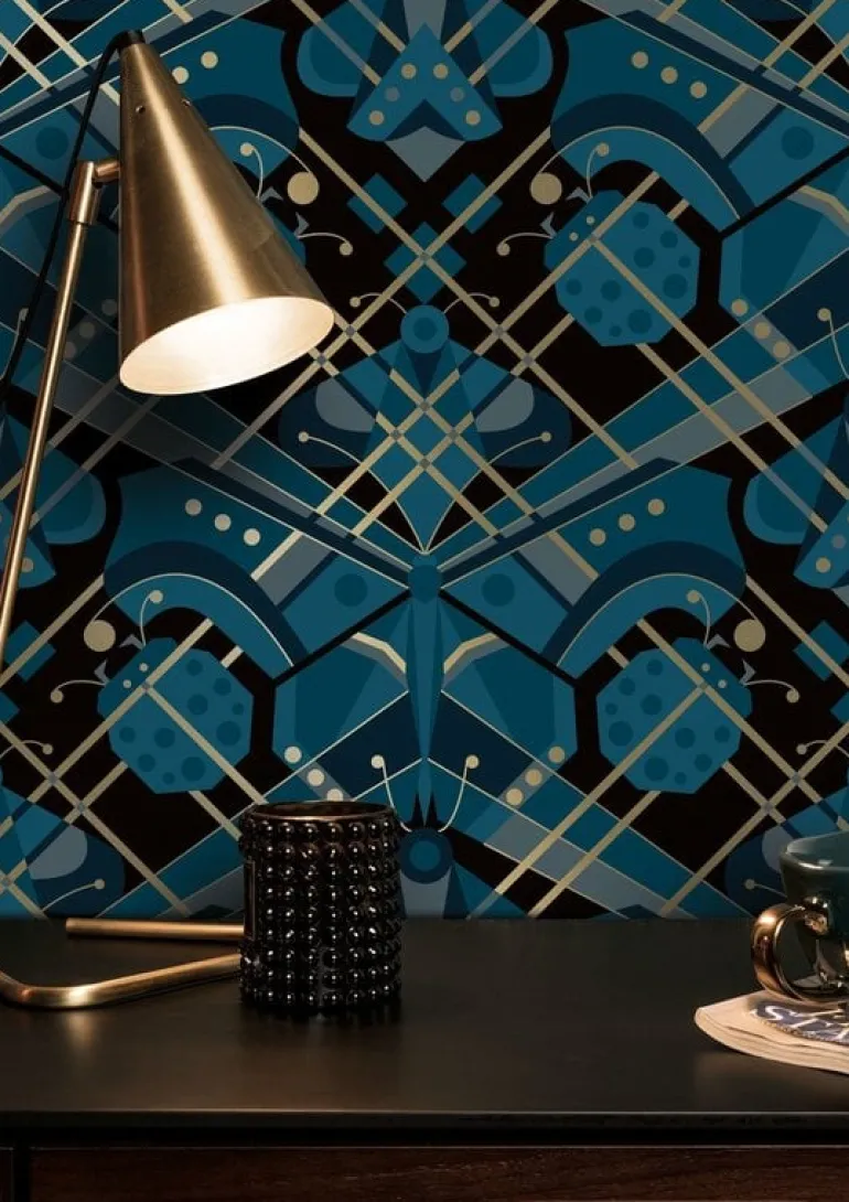 Prachtig goud behang met een mooie zijdeglans uitstraling van KEK Amsterdam. Het KEK Amsterdam Art deco animaux butterfly in jaren 30 stijl is een echte eyecatcher op de muur. Beschikbaar in verschillende kleuren. Afmeting 50 cm x 10 m