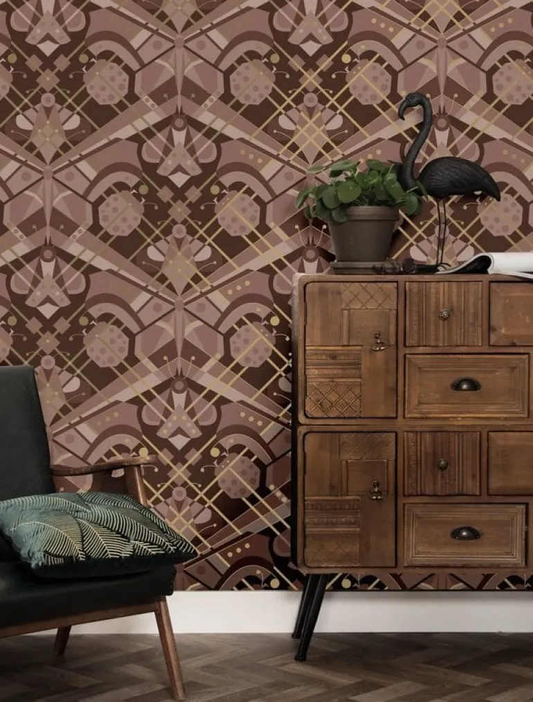 Prachtig goud behang met een mooie zijdeglans uitstraling van KEK Amsterdam. Het KEK Amsterdam Art deco animaux butterfly in jaren 30 stijl is een echte eyecatcher op de muur. Beschikbaar in verschillende kleuren. Afmeting 50 cm x 10 m