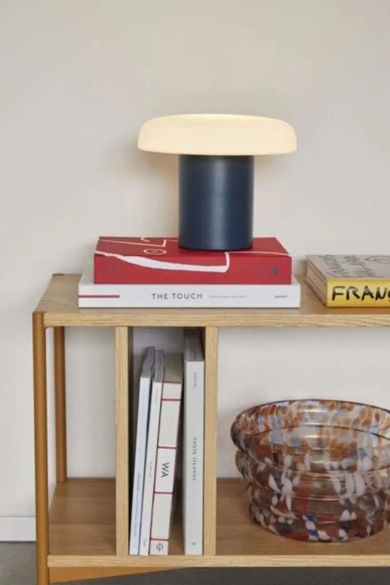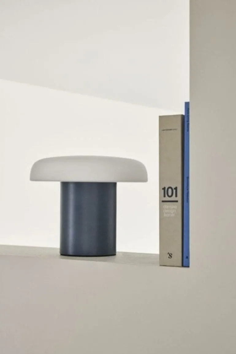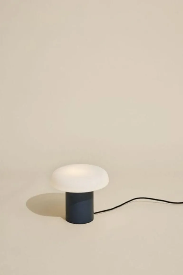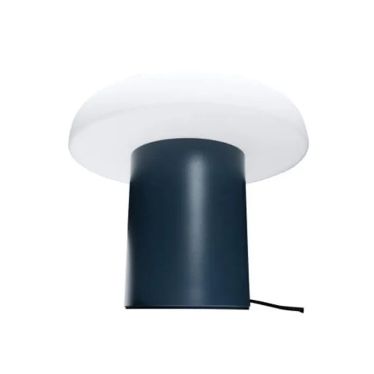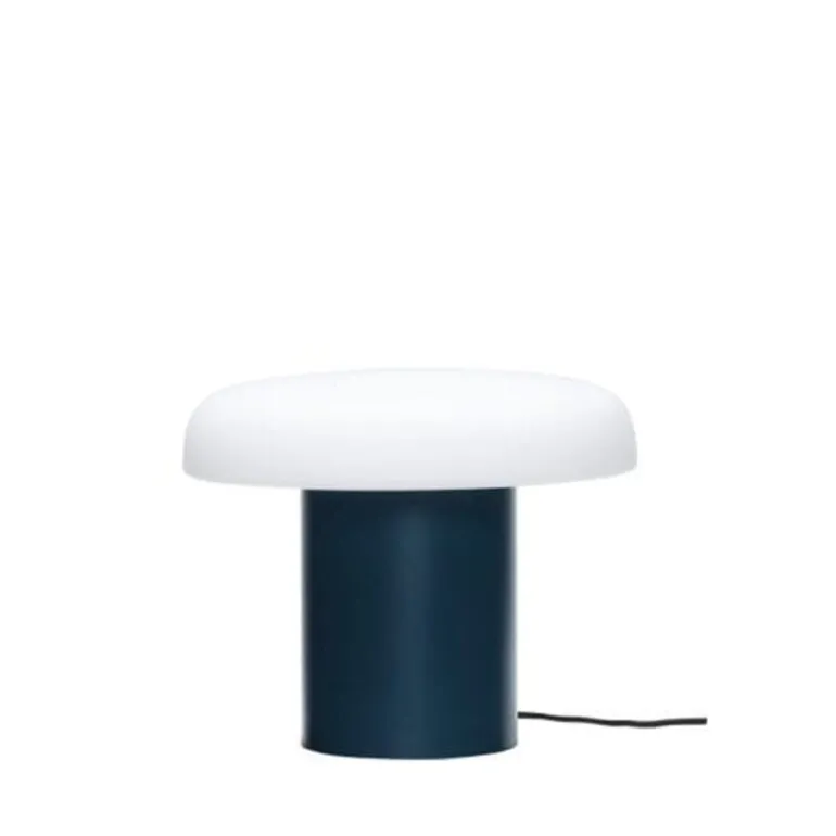 Mooie tafellamp van het Deense interieurmerk Hübsch. De donkerblauwe Hübsch Ateliers tafellamp is gemaakt van glas en ijzer. Afmeting Ø25x20cm, fitting E27.