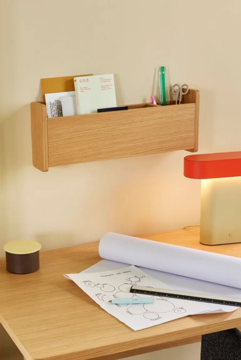 Handige organizer van Hubsch om aan de wand te hangen. De Hubsch Athand wandplank is gemaakt van MDF en eikenfineer. Afmeting 48x9x18cm