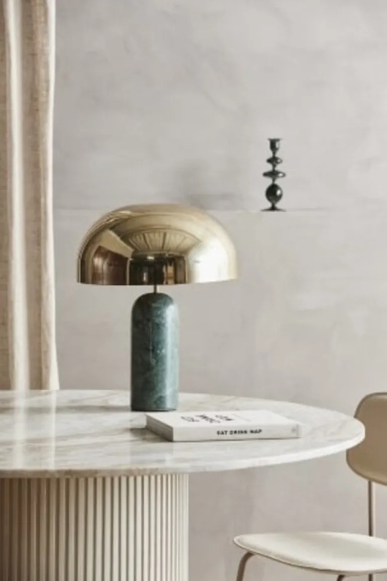 Prachtige tafellamp van Nordal. De Nordal Atlas tafellamp is gemaakt van groen marmer met een metalen lampenkap met een messing finish. Afmeting diameter 40cm en 49cm hoog. E27 max 40W. Ook beschikbaar in wit.
