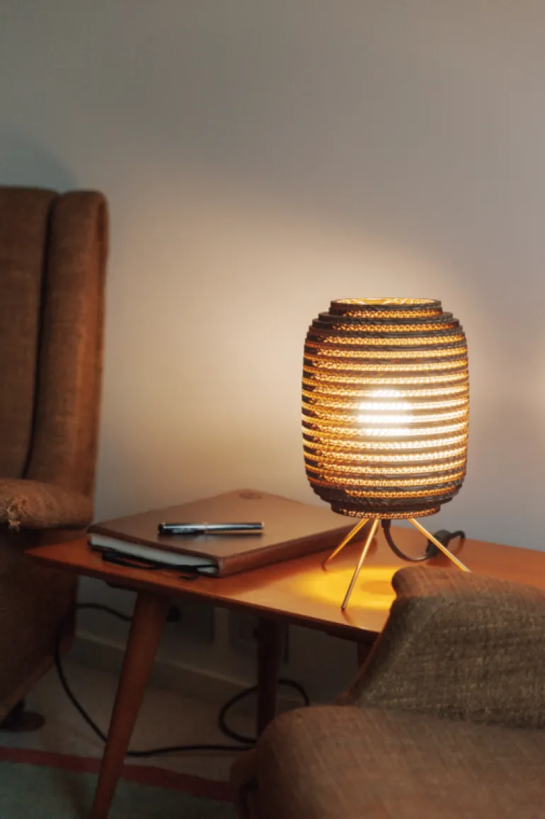 Prachtige lamp van Graypants. De Graypants Scraplights zijn handgemaakt van karton. Beschikbaar in verschillende uitvoeringen, afmetingen en kleuren. De Graypants Ausi tafellamp heeft een afmeting van Ø20x24cm