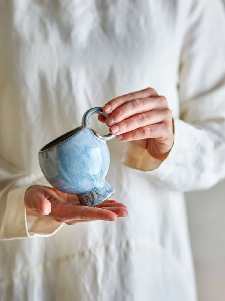 De Bloomingville Avonlea mokken zijn gemaakt van aardewerk in blauwtinten. De mok heeft een verhoogde voet en een rond handvat. Wordt geleverd in een set van 4 stuks. Afmeting Ø9×10,5cm