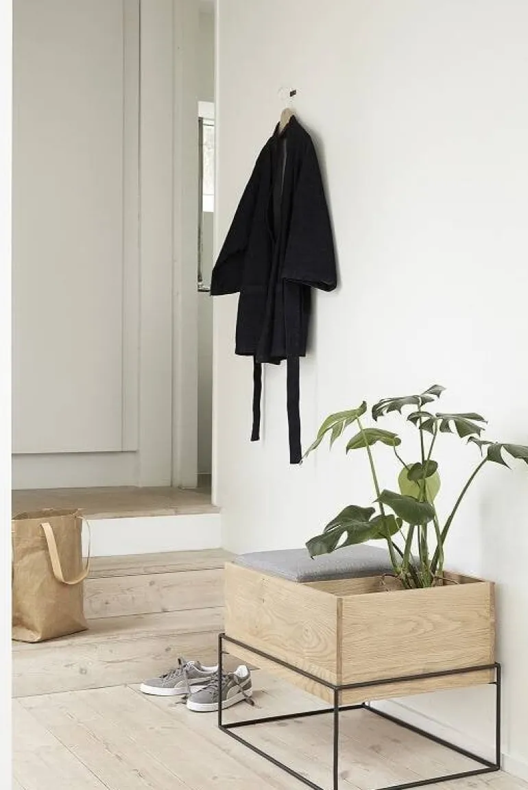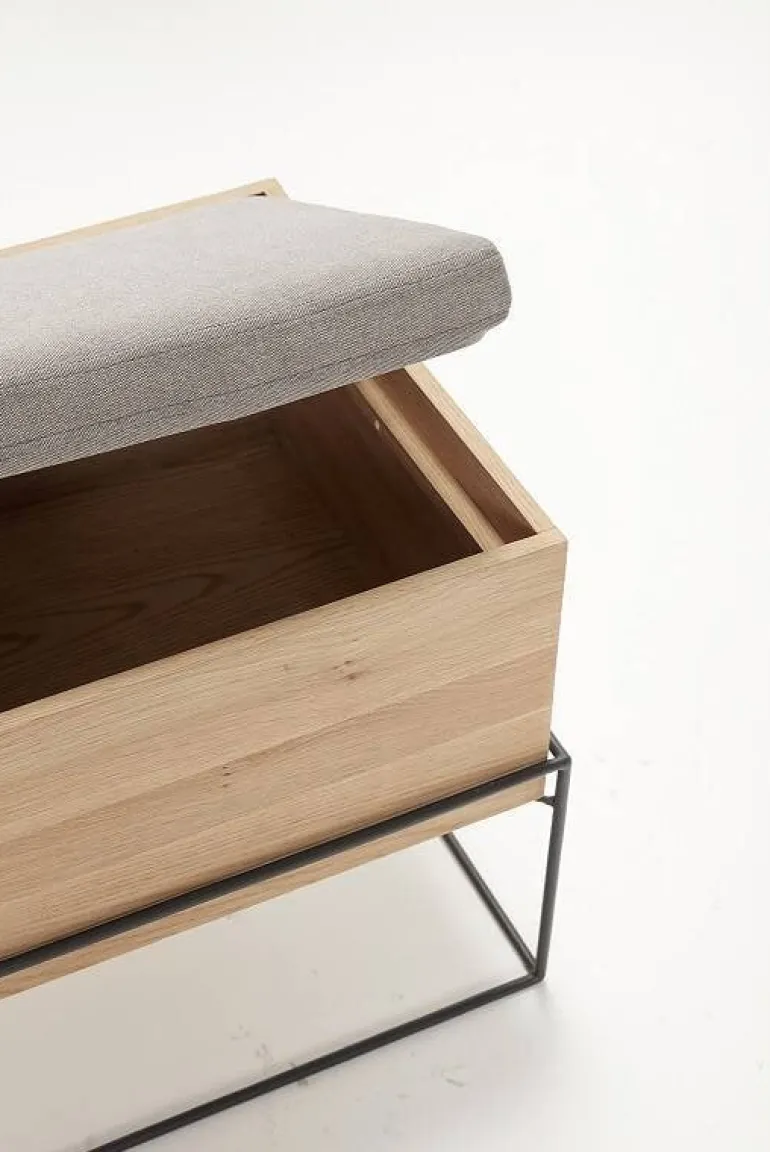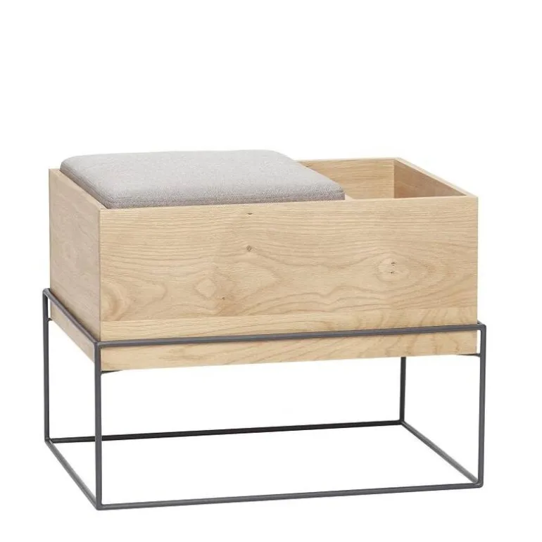 Hübsch bank met opbergvak. Dit mooie Hübsch bankje is gemaakt van eikenhout en voorzien van grijs kussen. Ook beschikt het bankje over een opbergvak voor je favoriete woonbladen of andere decoratie. Handig!