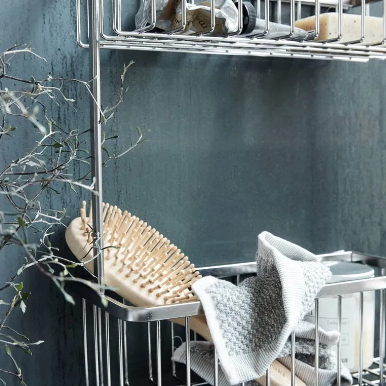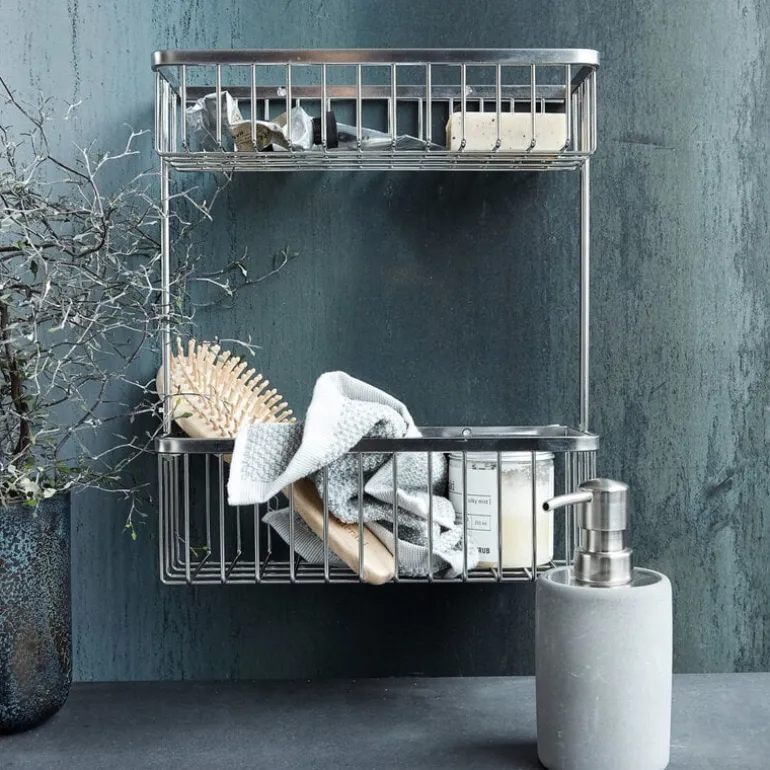 De Bath dubbel mand van het Deense House Doctor is de perfecte oplossing om spulletjes op te bergen. Gebruik deze roestvrij stalen mand in de badkamer, bij je make up tafel of zelfs in de keuken! Afmeting L: 28 CM, W: 11,5 CM, H: 33,3 CM