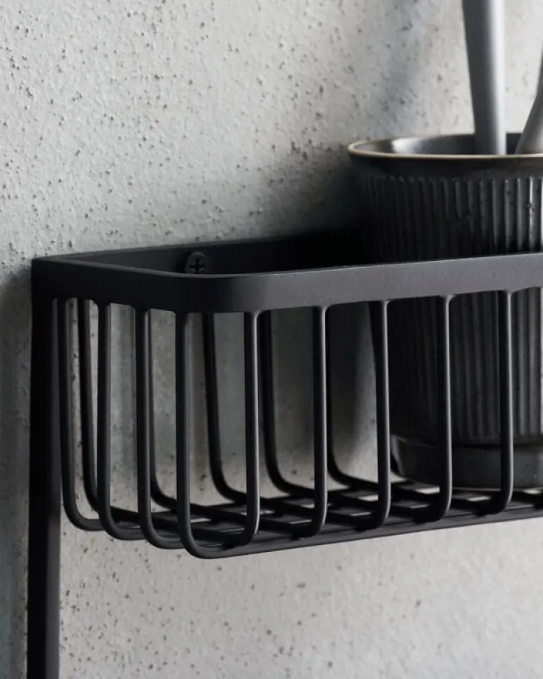 Ideale wandplank voor in de badkamer. Het House Doctor bath wandrek heeft een mandje om spullen op te bergen en drie openingen voor flesjes zoals shampoo en conditioner. Afmeting 25,5×8,5x20cm.
