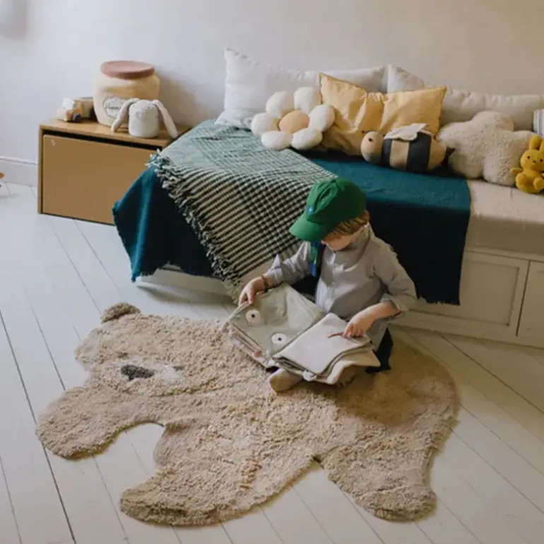 Het Lorena Canals Bear Animal vloerkleed is handgemaakt in zachte beige- en honingtinten en is een genot voor teddybeerliefhebbers. Unieke details zoals de verschillende poolhoogtes en de dubbele tufting versterken de realistische look. Afmeting 120x122cm