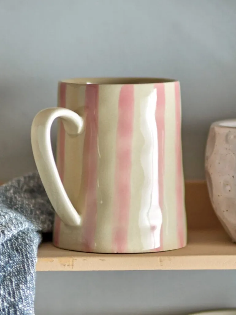 De Bloomingville Begonia mokken zijn gemaakt van aardewerk met een handgeschilderd gestreept patroon. Wordt geleverd in een set van 6 stuks. Afmeting Ø9x11cm