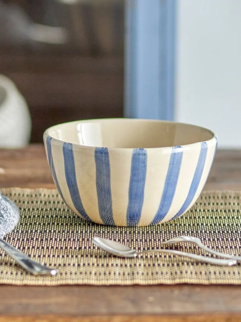 De Bloomingville Begonia schalen zijn gemaakt van aardewerk met een handgeschilderd gestreept patroon. Wordt geleverd in een set van 6 stuks. Afmeting Ø14x7cm