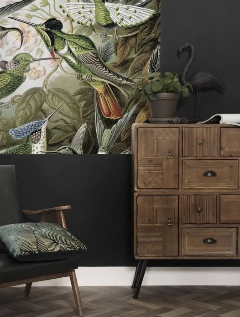 De KEK Amsterdam Exotic Birds behangpaneel collectie bestaat uit drie losse behangbanen die samen een groot paneel vormen van 142,5 cm breed bij 180 cm hoog. Geprint op premium kwaliteit vliesbehang (165 grams, extra mat).