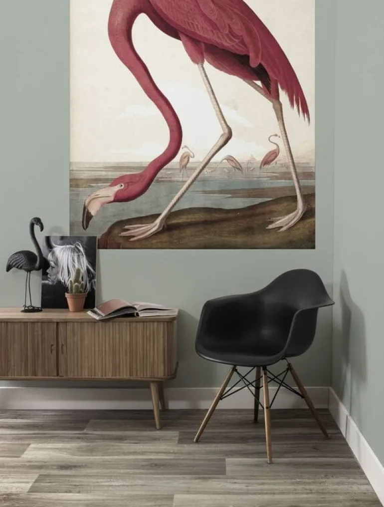 De KEK Amsterdam Flamingo behangpaneel collectie bestaat uit drie losse behangbanen die samen een groot paneel vormen van 142,5 cm breed bij 180 cm hoog. Geprint op premium kwaliteit vliesbehang (165 grams, extra mat).