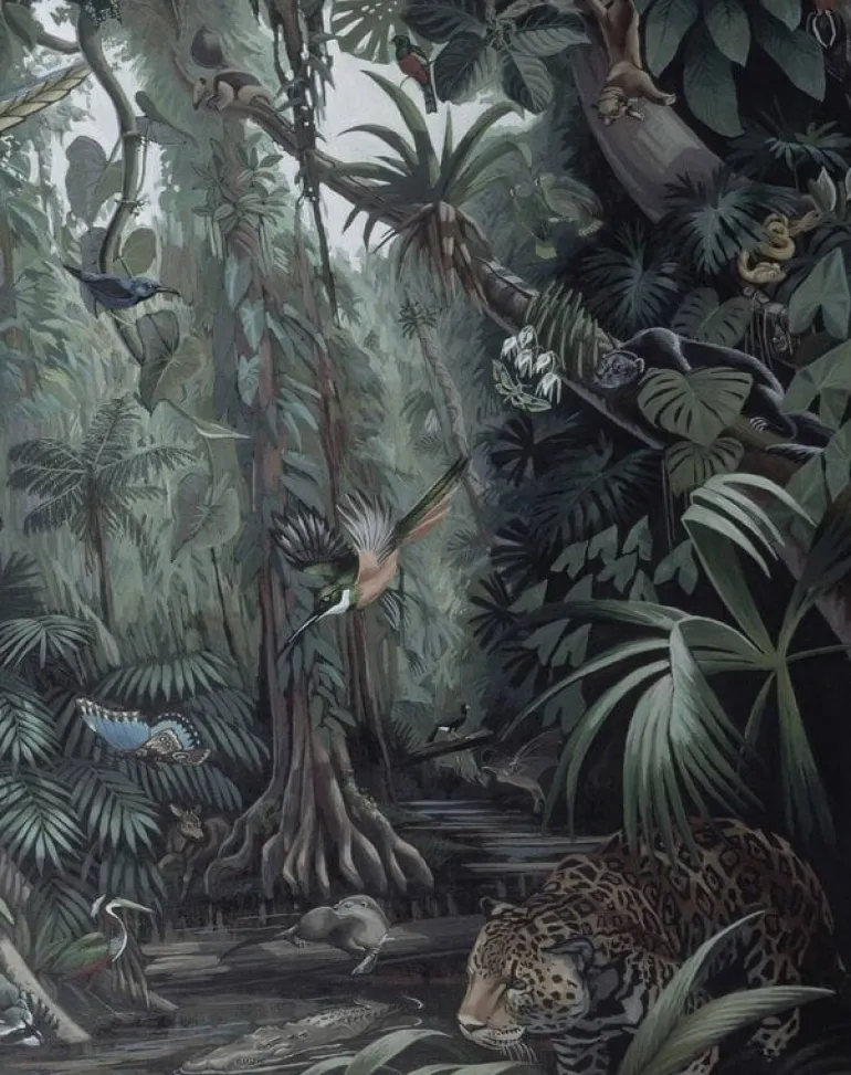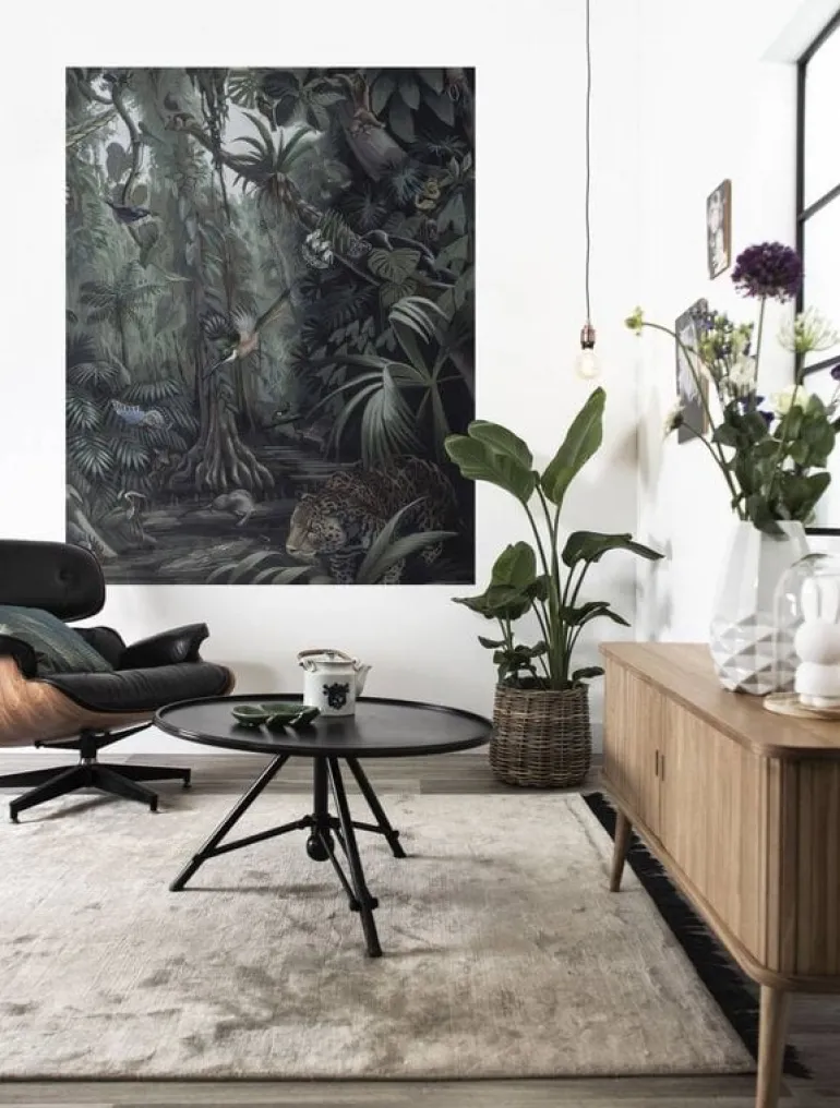 De KEK Amsterdam Tropical Landscape behangpaneel collectie bestaat uit drie losse behangbanen die samen een groot paneel vormen van 142,5 cm breed bij 180 cm hoog. Geprint op premium kwaliteit vliesbehang (165 grams, extra mat).
