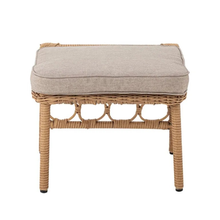 De Bloomingville Belluce loungestoel met voetenbankje heeft een geweven polyrotan design en is voorzien van kussens van polyester met een charmante linnenlook. Wij adviseren om tuinmeubilair in een overdekte ruimte te plaatsen. Afmeting 66x82x72cm