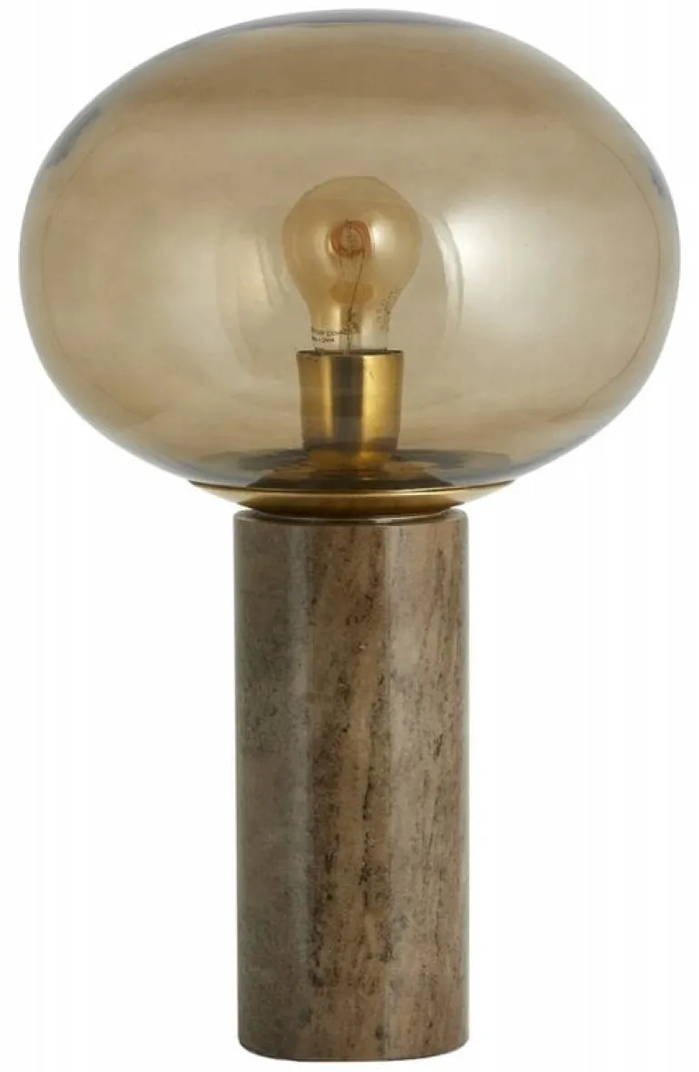 Prachtige tafellamp van Nordal. De Nordal Bes tafellamp is gemaakt van smoked glas en bruin marmer. Afmeting diameter 29cm en 45cm hoog. E27 max 60W