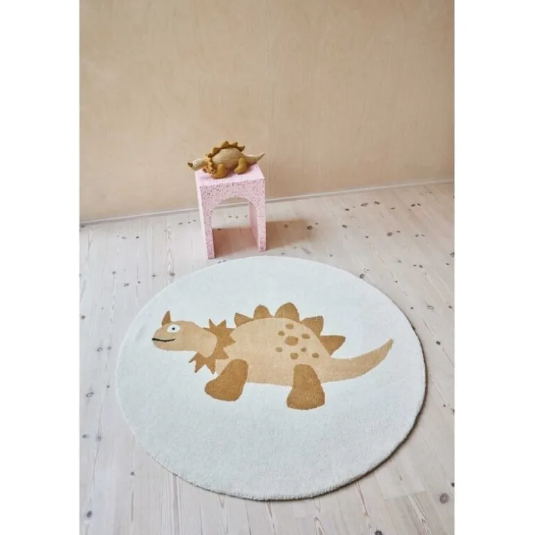 Prachtig rond vloerkleed met een diameter van 120cm van het merk OYOY. Het OYOY Billy dino vloerkleed is gemaakt van 80% wol en 20% katoen. Het kleed heeft een print van een leuke dinosaurus.