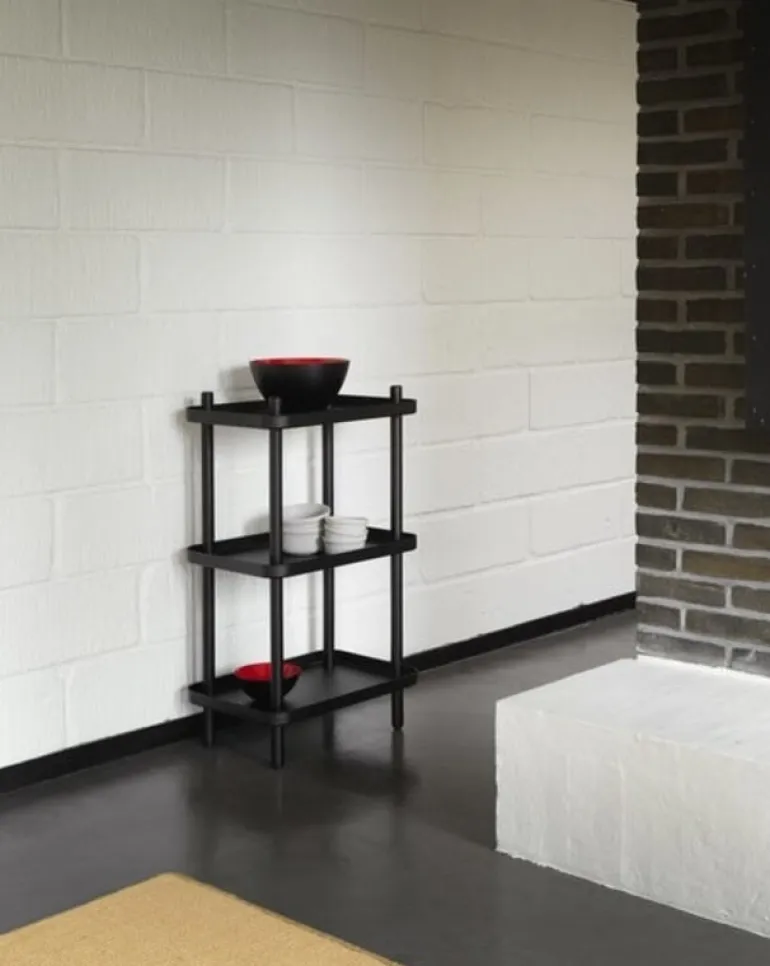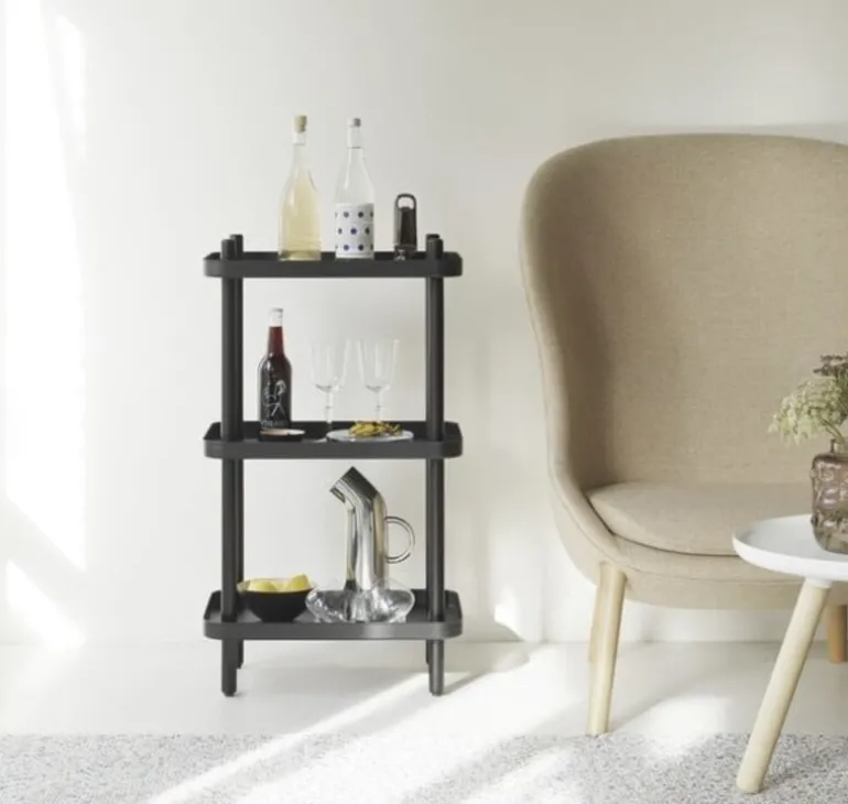 Tijdloos rek van het Deense merk Normann Copenhagen . De Normann Copenhagen Block tafel/rek is gemaakt van essenhout en staal. Plaats het rek in de keuken, woonkamer of badkamer. Afmeting 87x50x35cm.