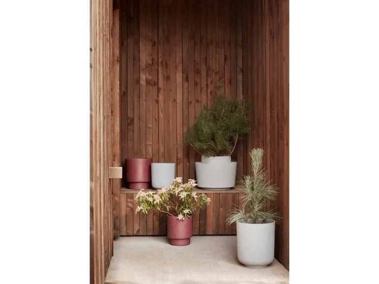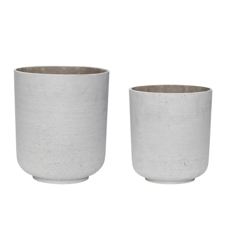 Moderne Hübsch bloempotten uit de nieuwe Hübsch collectie. Deze mooie potten zijn gemaakt van aardewerk en hebben een lichtgrijze finish. Afmeting ø31xh36cm, set van 2 stuks.