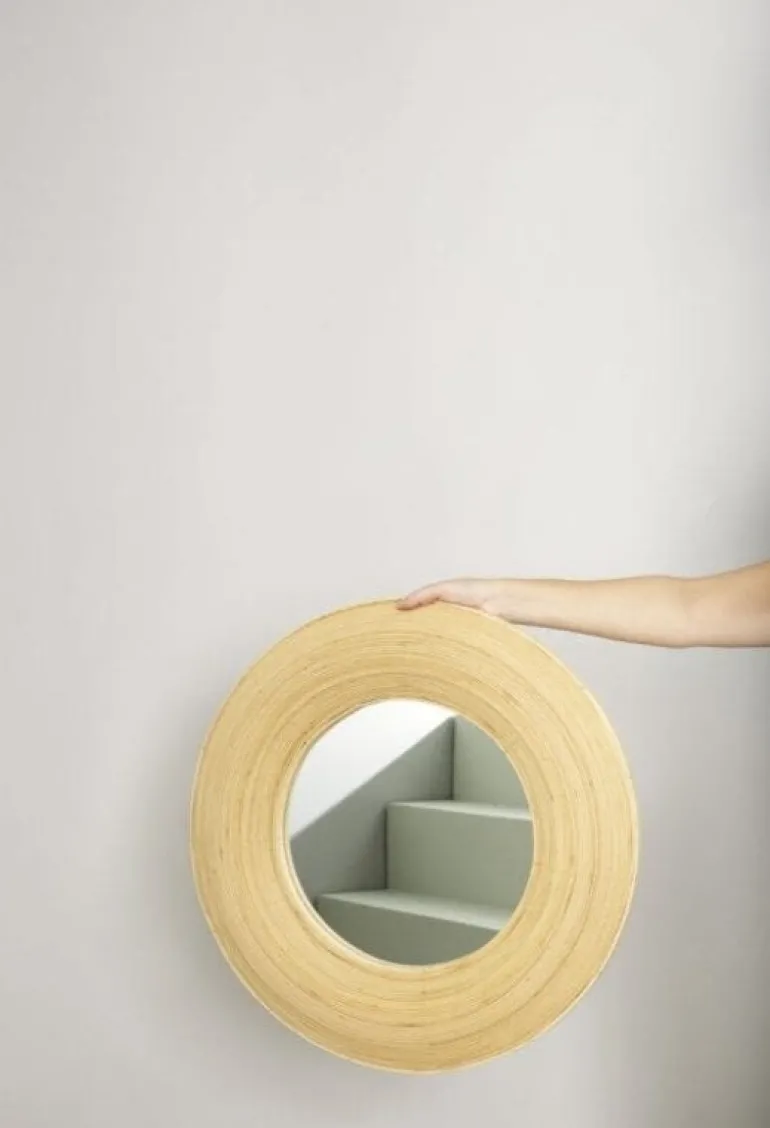 Ronde wandspiegel met een bamboe omlijsting in een naturel kleur. De Hubsch Blush spiegel heeft een diameter van 60cm. Waar hang jij deze mooie spiegel?