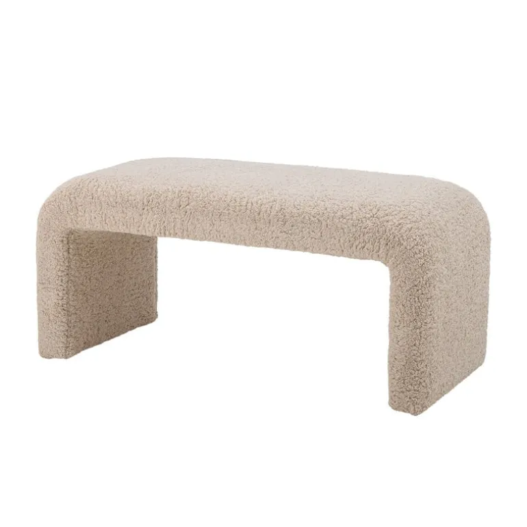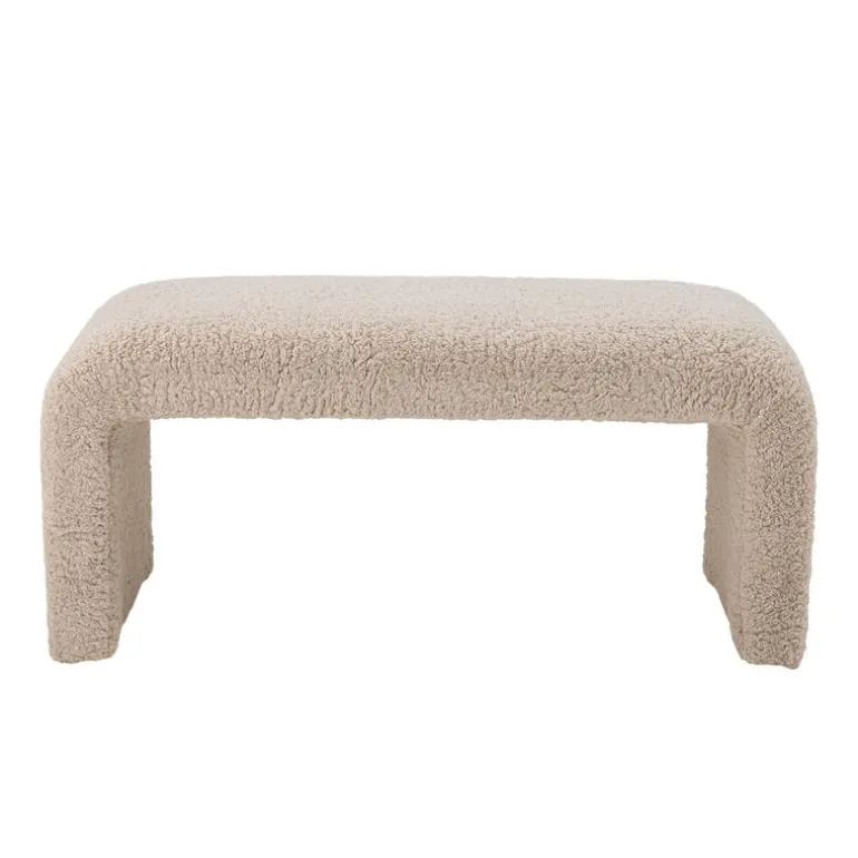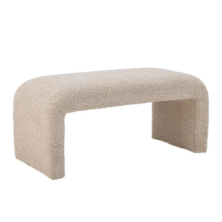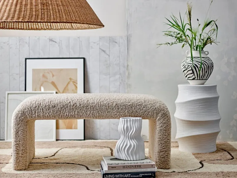 De Bloomingville Bobbie Bench is een organisch gevormde bank in een lichte boucléstof. De bank is op zichzelf al zeer decoratief maar kan ook gestyled worden met kussens en plaids of andere decoratieve elementen. Afmeting 100x45x45cm