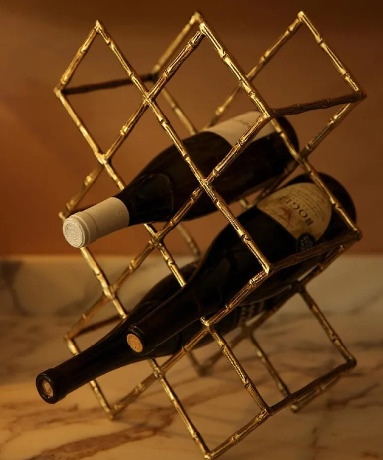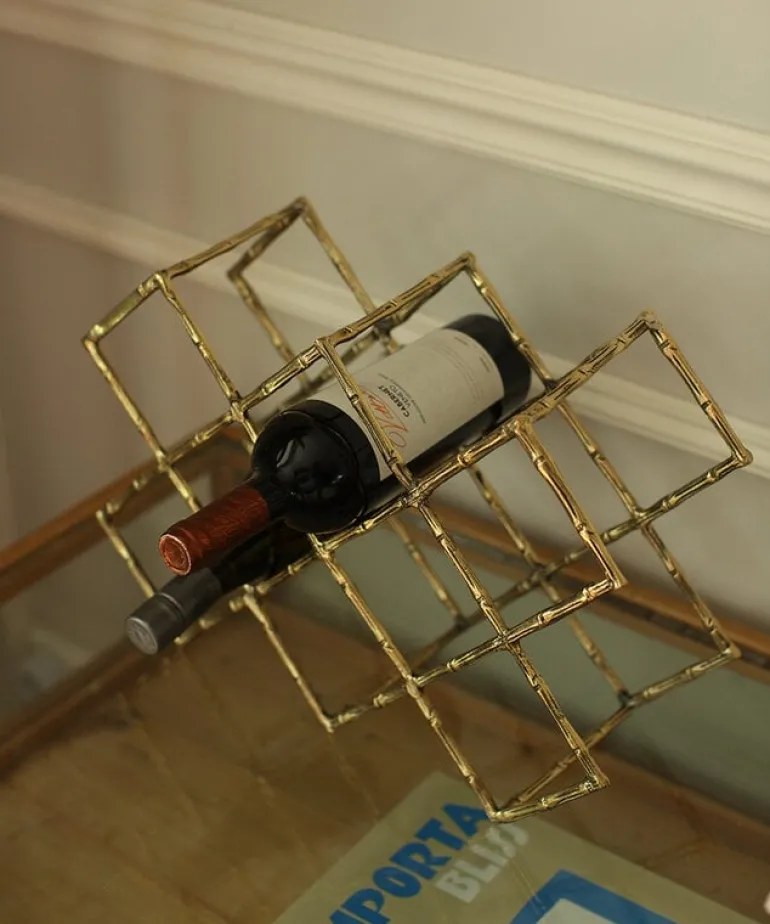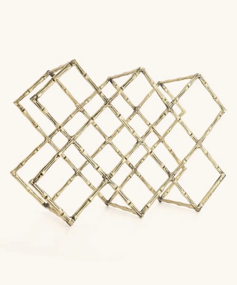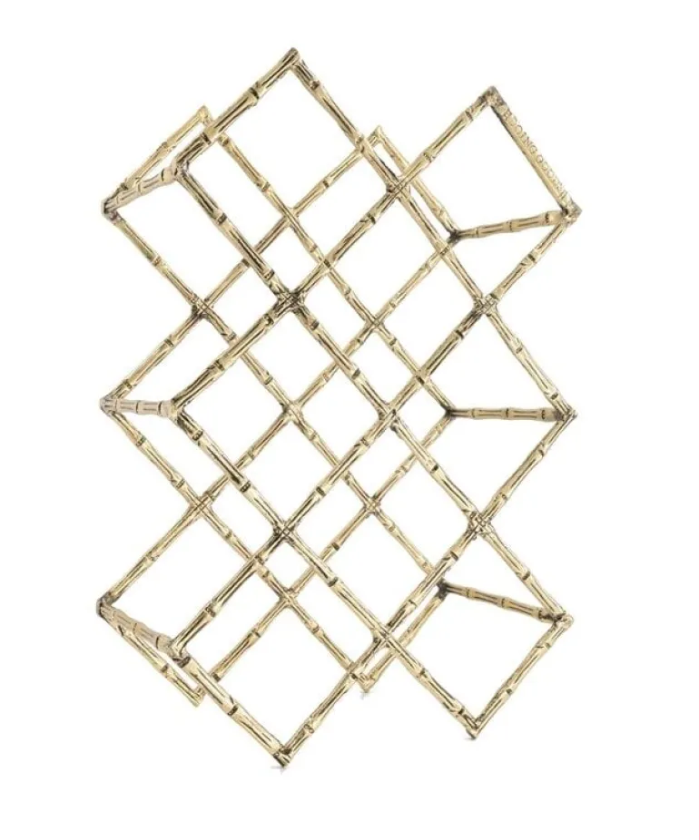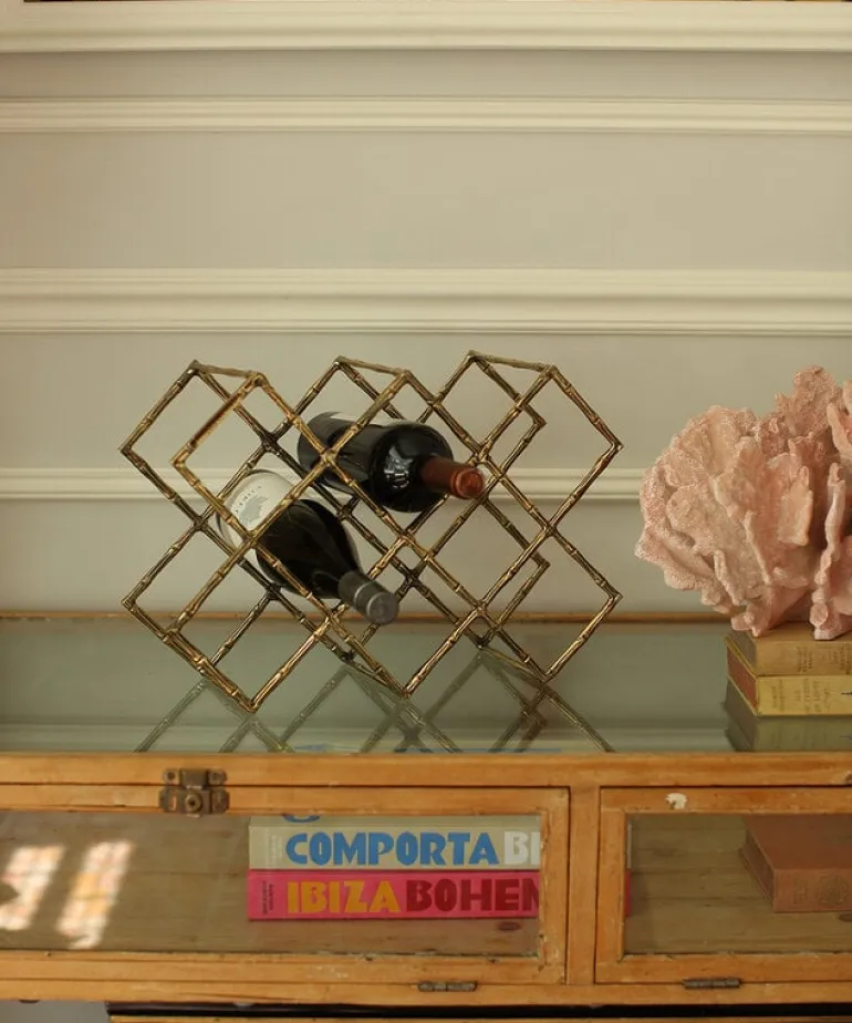 Prachtig wijnrek van het merk Doing Goods. Het Doing Goods Bodhi wijnrek is handgemaakt in India van gerecycled messing. Het messing heeft een mooi ‘bamboe’ patroon. Er passen maximaal 10 flessen in het wijnrek. Afmeting 43x29x15 cm