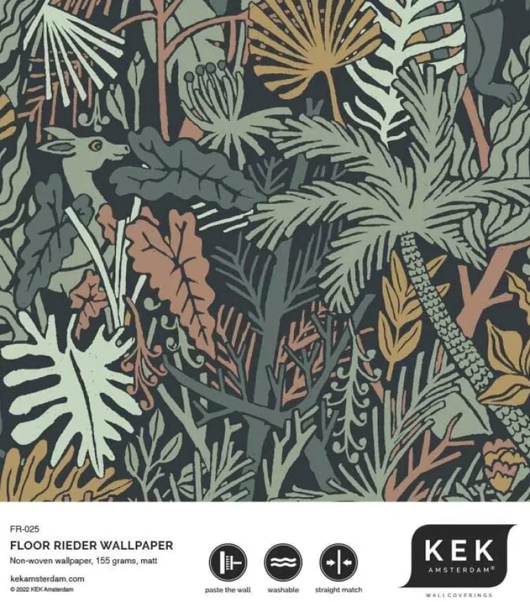 De KEK Amsterdam behang collectie van Floor Rieder is een eigentijdse behangcollectie waarmee je kleur en sfeer toevoegt aan je interieur. Het KEK Amsterdam botanisch behang heeft een afmeting van 100x280cm.