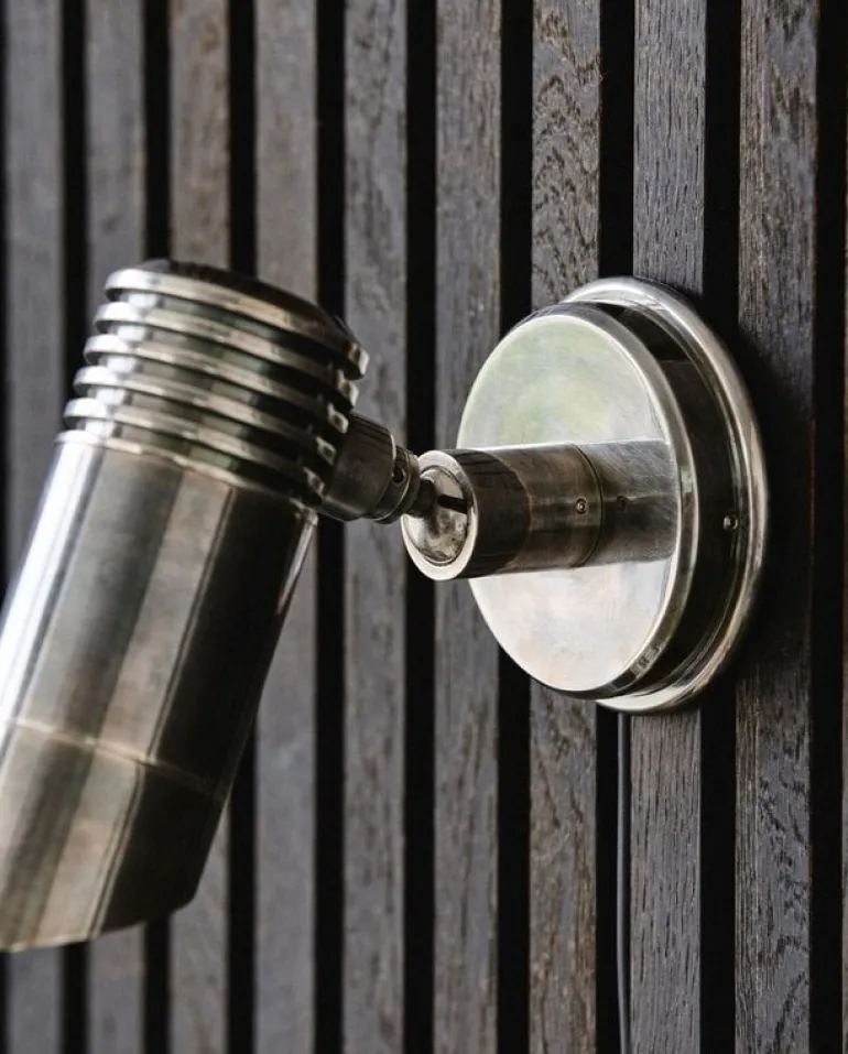 Stoere LED lamp van Nordal. De Nordal Bragi wandlamp is gemaakt van messing met een antiek zilveren finish . De lamp is voor zowel binnen- als buiten gebruik. Beschikbaar in verschillende uitvoeringen en kleuren. Afmeting 20x11x20x16cm, Ø6cm.