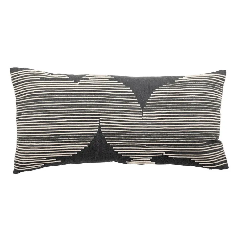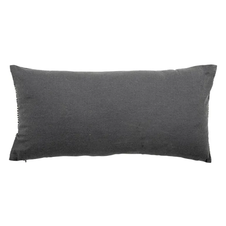 Het Bloomingville Brechia kussen is een decoratief kussen met een lange rechthoekige vorm. Het heeft een donkergrijze kleur en is geborduurd met lichte strepen, wat het kussen een grafische uitstraling geeft. Afmeting 60x30cm