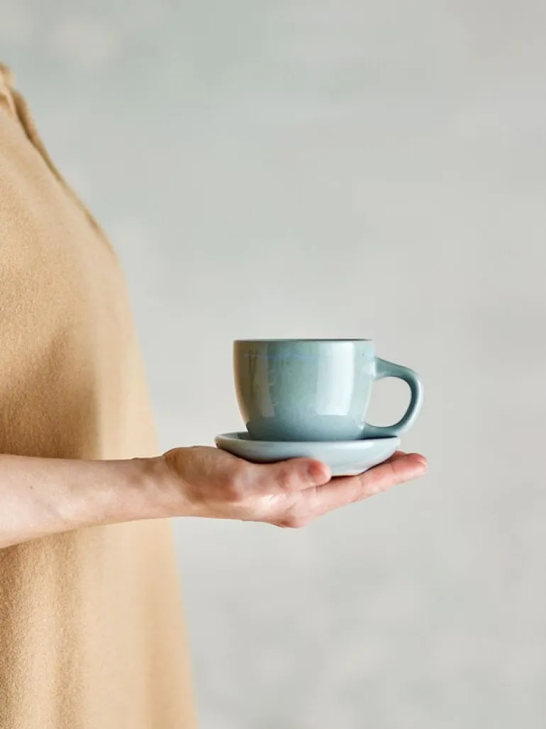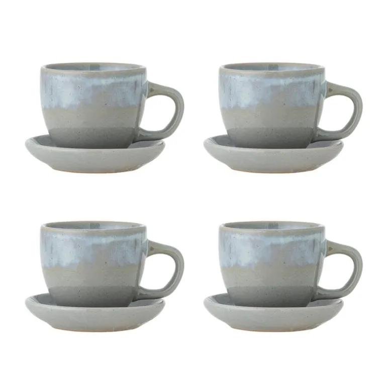 De Bloomingville Brenta kop en schotel is gemaakt van aardewerk in mooie blauwtinten. Wordt geleverd in een set van 4 stuks. Afmeting Ø11×7,5cm