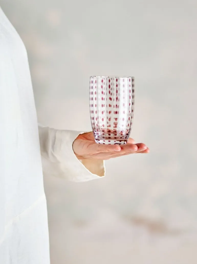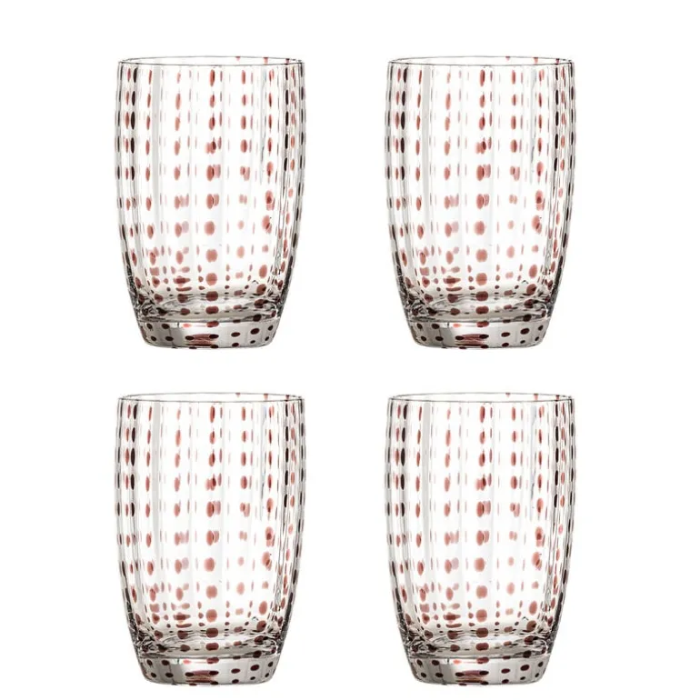 De Bloomingville Brinley glazen zijn gemaakt van mondgeblazen glas met stippellijnen in bruintinten. De glazen worden geleverd in een set van 4 stuks. Afmeting Ø7,5x11cm