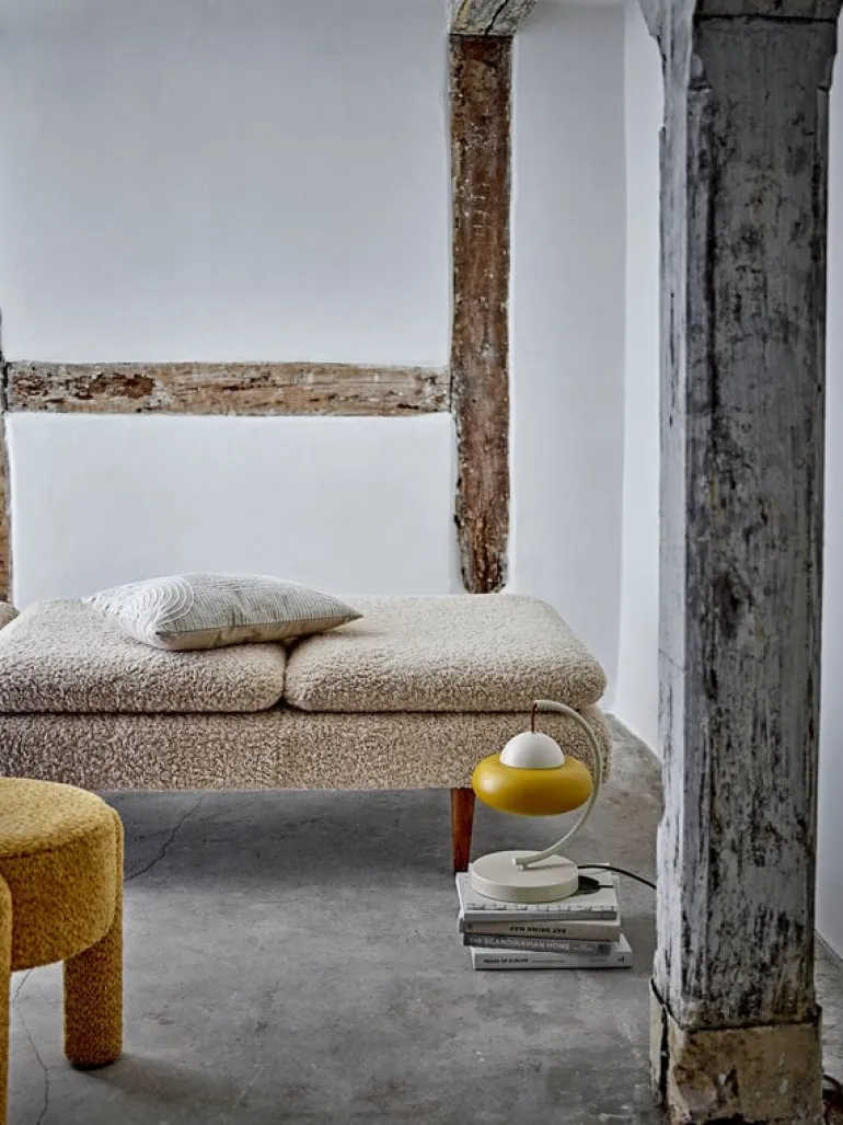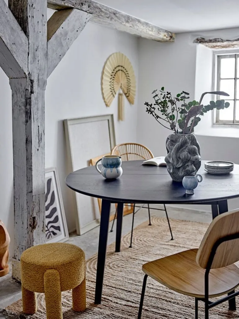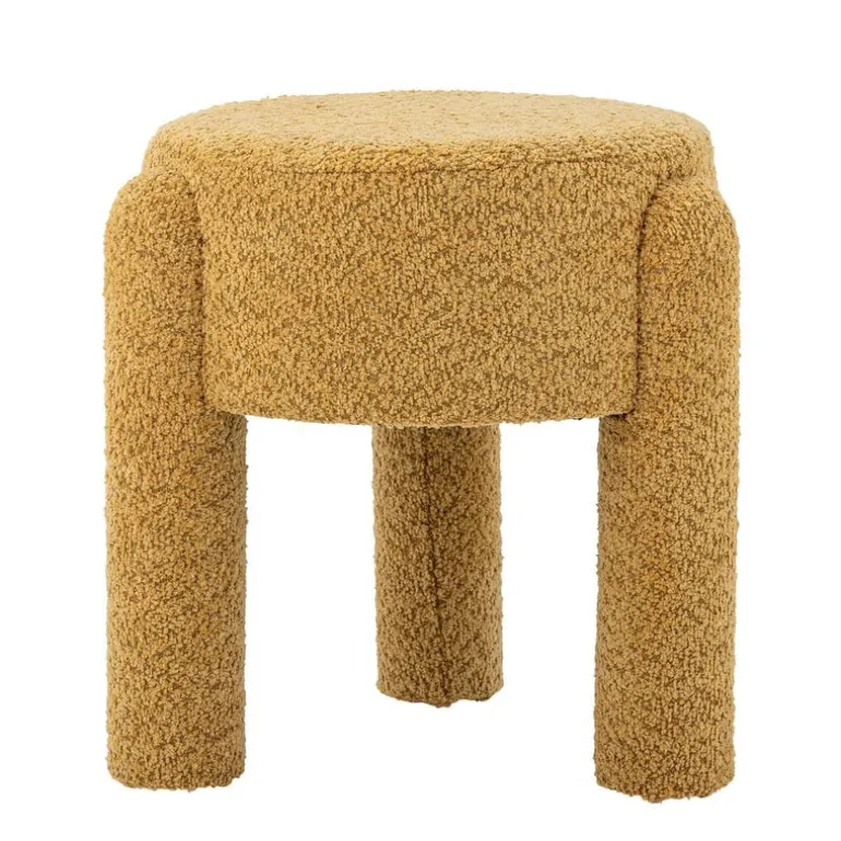De Bloomingville Bruno kruk is bekleed met zacht polyester in een warme gele kleur. Het expressieve design maakt de kruk perfect als extra zitplaats of decoratief detail. Afmeting Ø42x43cm