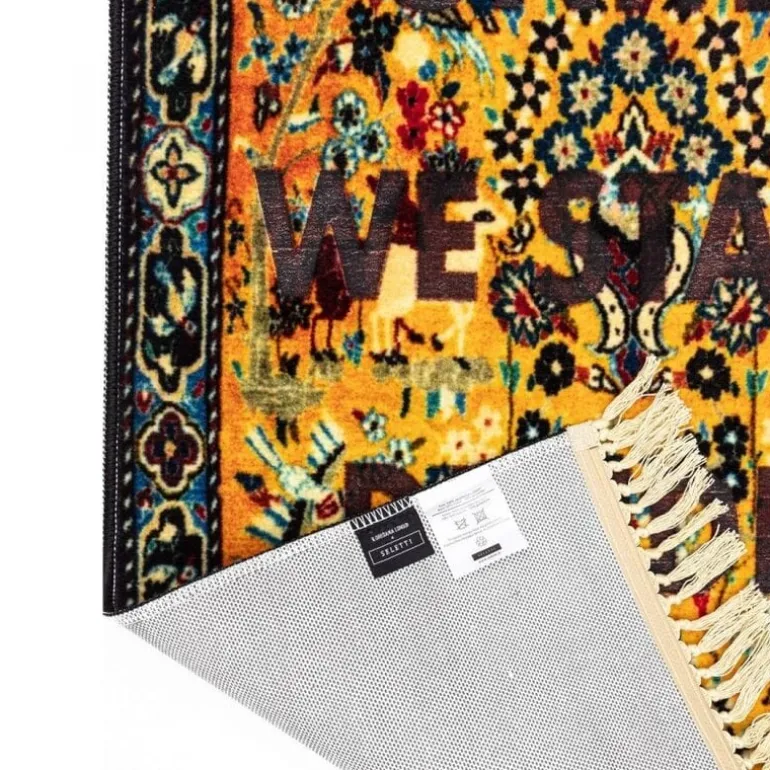 Kleurrijk vloerkleed van het interieurmerk Seletti. Het Burnt vloerkleed united is gemaakt van polyester en op het kleed staat de tekst ‘United we stand divided we fall’. Beschikbaar in verschillende uitvoeringen. Afmeting 80x120cm