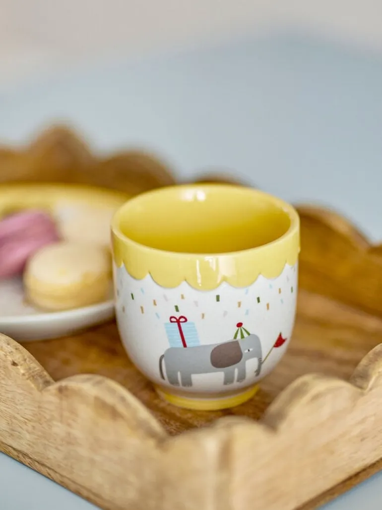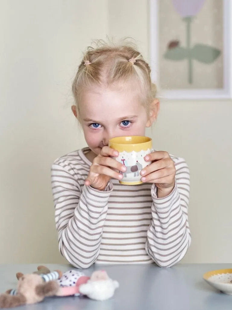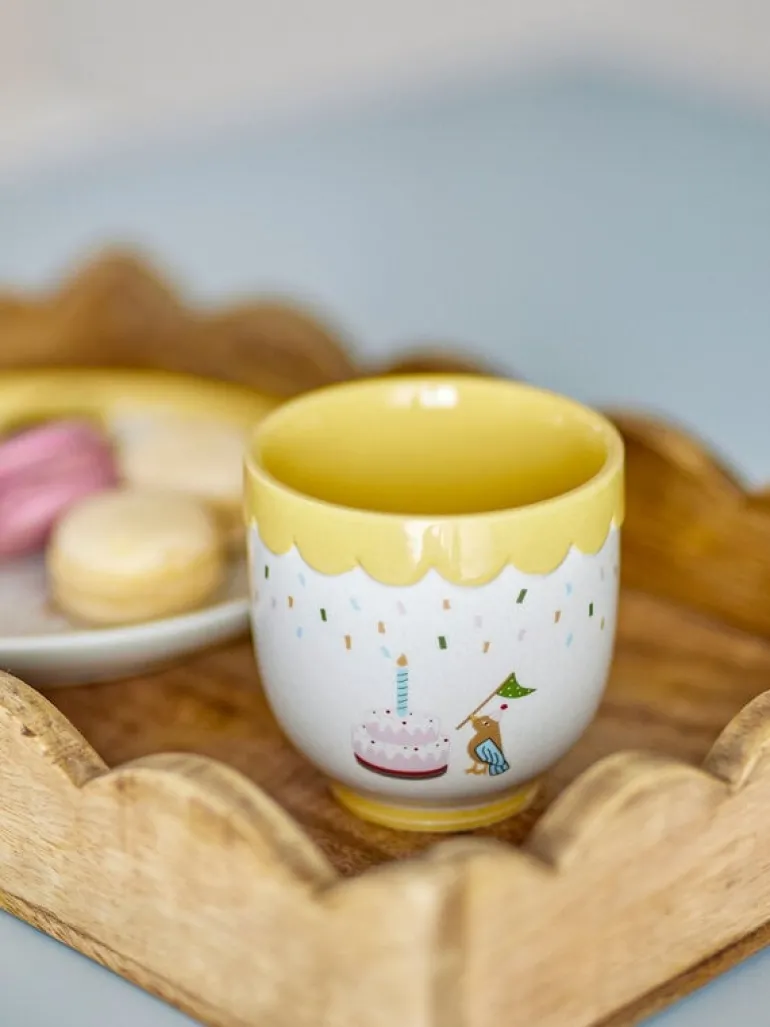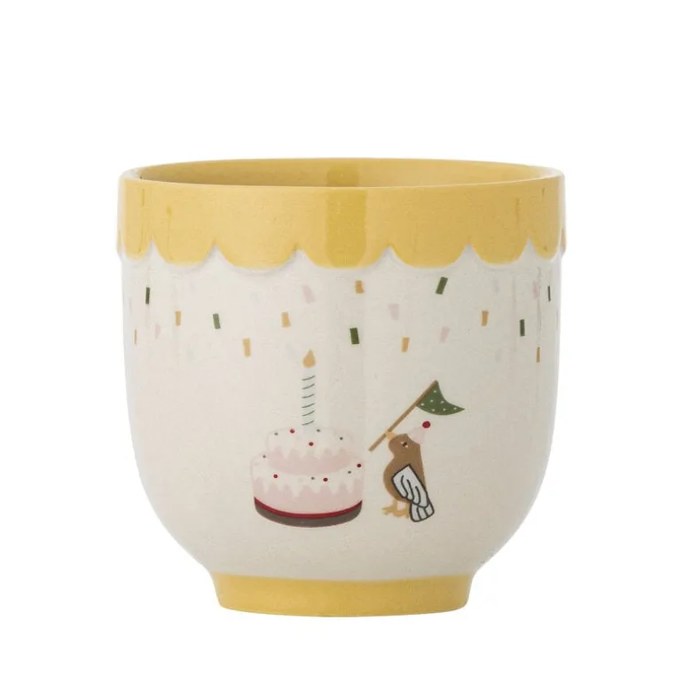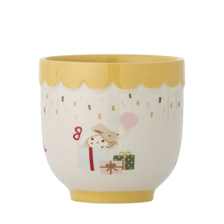 De Bloomingville Mini Celebrate mokken zijn gemaakt van aardewerk en versierd met feestelijke illustraties in zachte tinten. De gele binnenkant geeft een warme en levendige touch aan tafel. Afmeting 7,5×7,5cm