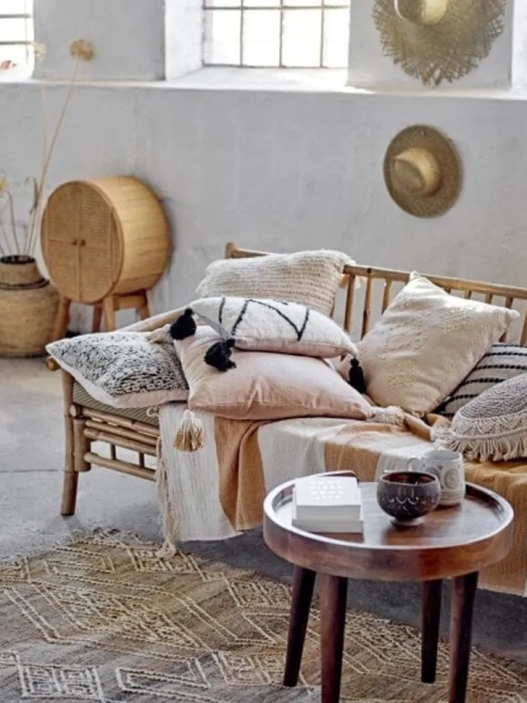 De Bloomingville Cem mand is gemaakt van gajih, katoen en ijzer. Mooi om te gebruiken als decoratiestuk in jouw interieur. Afmeting D46xH43,5 cm
