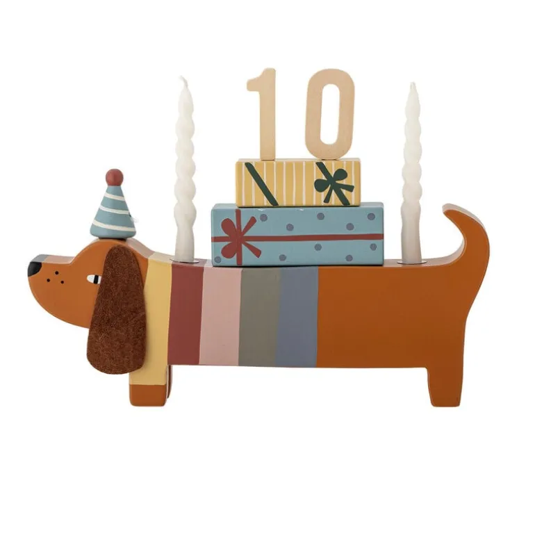 De Bloomingville Mini Charlie verjaardagsdecoratie is een feestelijk en gezellig element voor de verjaardag van het kind. Er is ruimte voor twee kaarsen en de cijfers 0-9 kunnen geplaatst worden. Afmeting 28x5x14cm