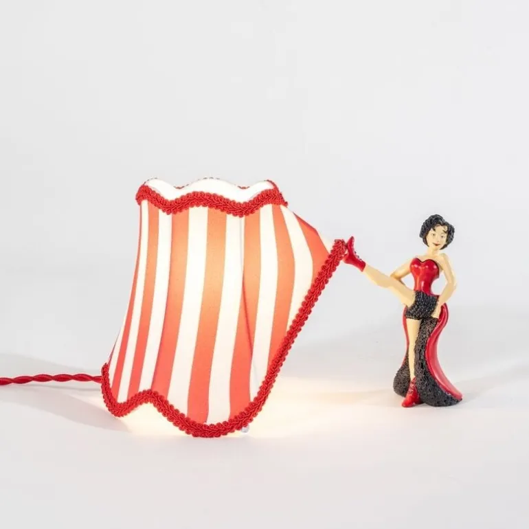 Grappige personages, geïnspireerd door de circuswereld. Omdat ze graag willen pronken met hun vaardigheden of kracht, heffen ze een flap van de lamp op, klaar om het toneel te betreden. De Seletti Circus AbatJour Lucy lamp heeft een afmeting van 26x19cm